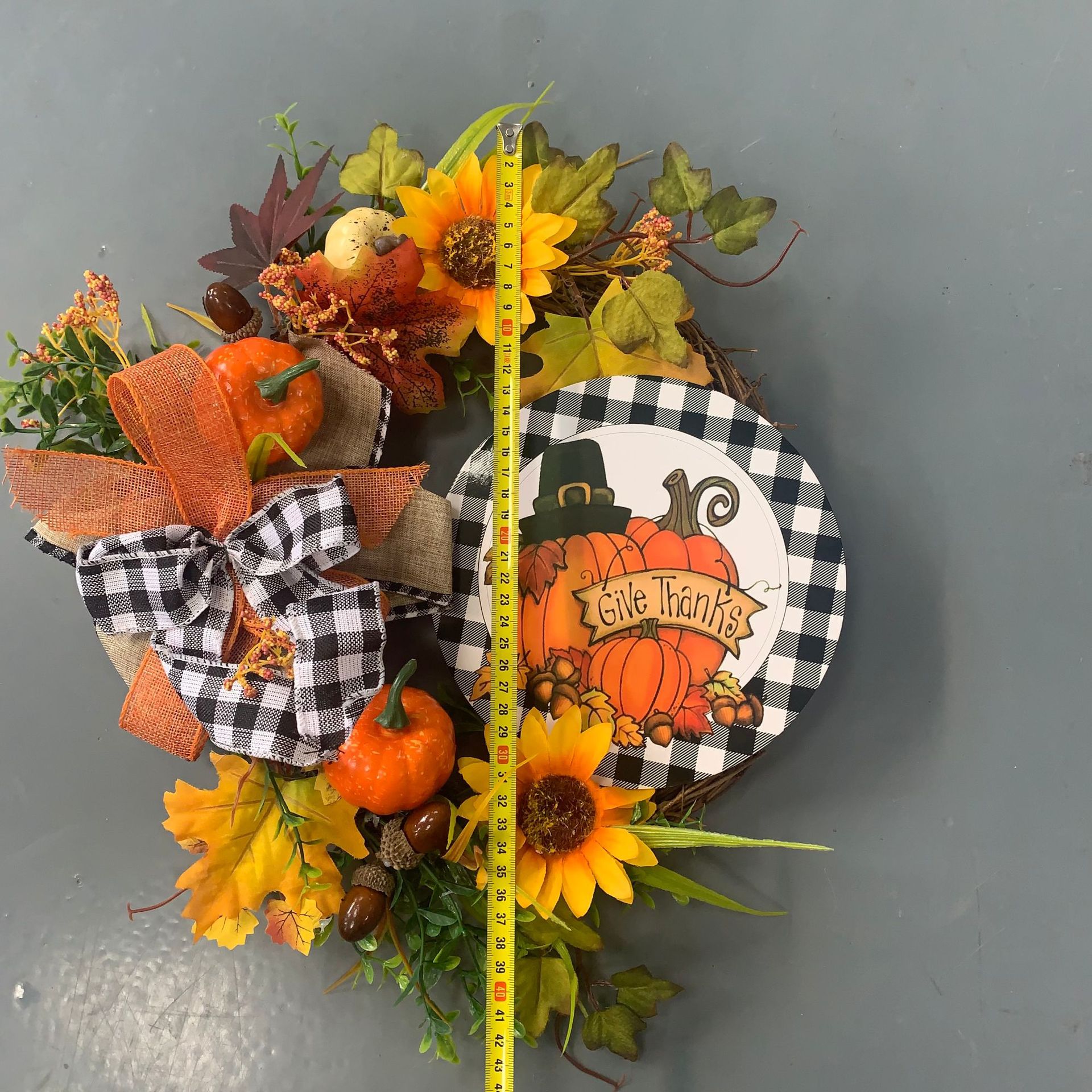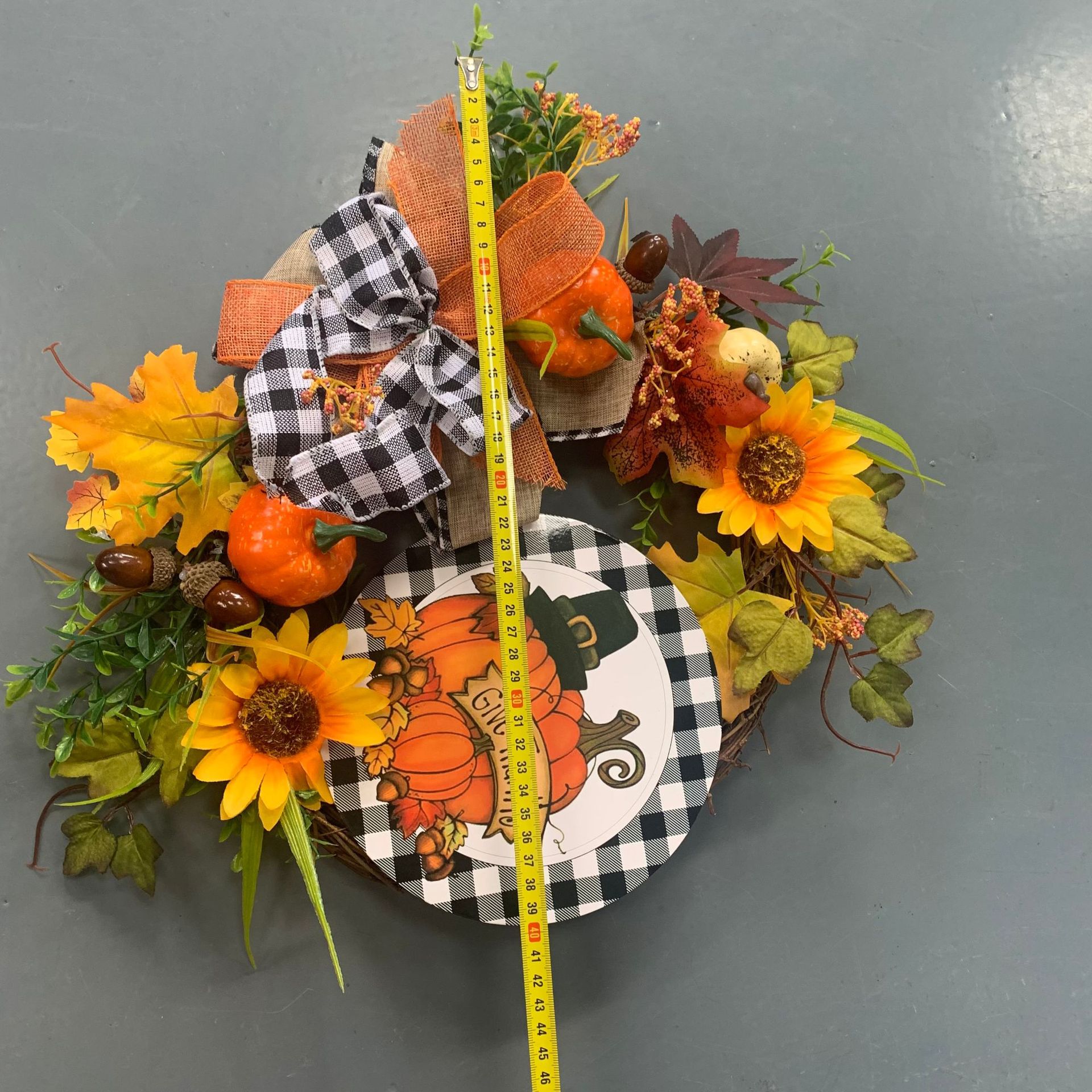 Buffalo Lattice Pumpkin Sunflower Wreath -Place Arrangement Prop, half -handed and semi -mechanical,