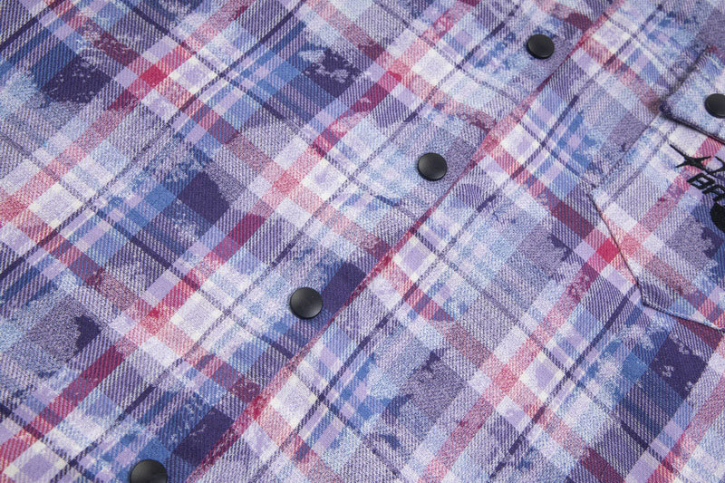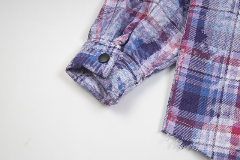 American Retro Street Letter Print Plaid Long Sleeve Shirt