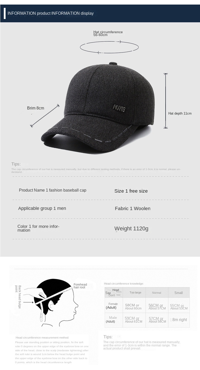 Autumn/Winter Duckbill Cap with 21%-30% Cotton, Stylish and Comfortable, Protect from Wind and Cold