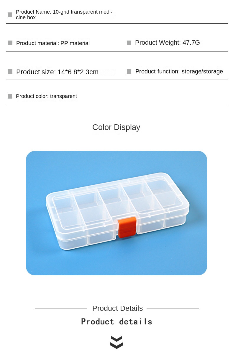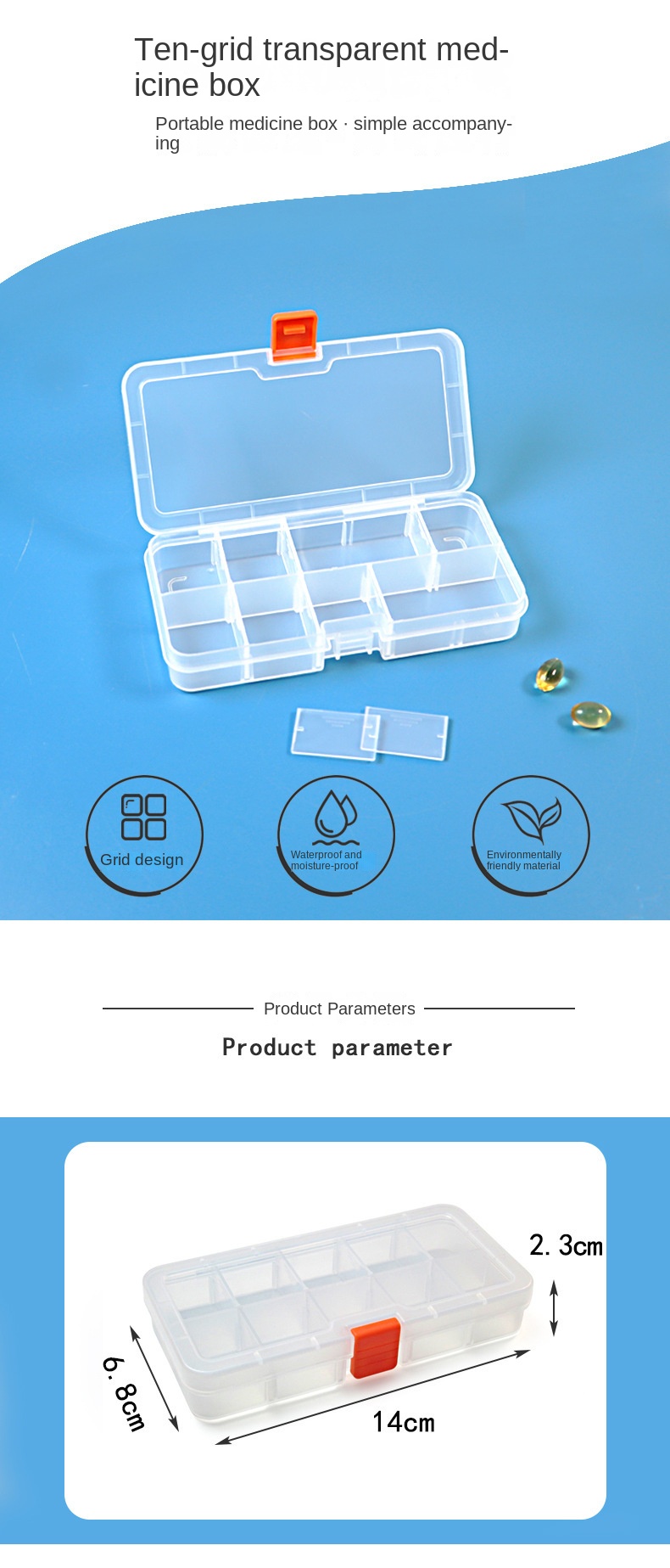 10 Grid Transparent Medicine Box with 6 Grid 8 Grid Storage Box Plastic Storage Box