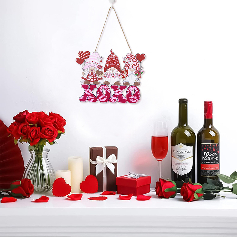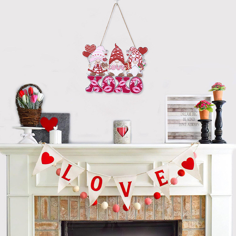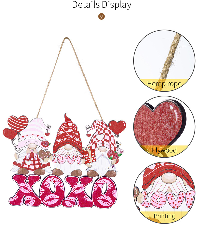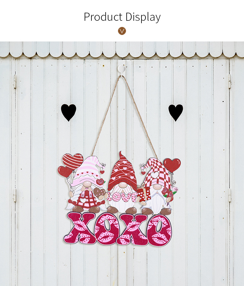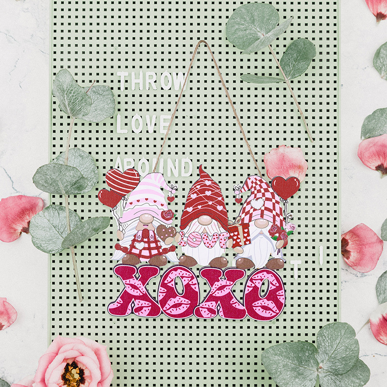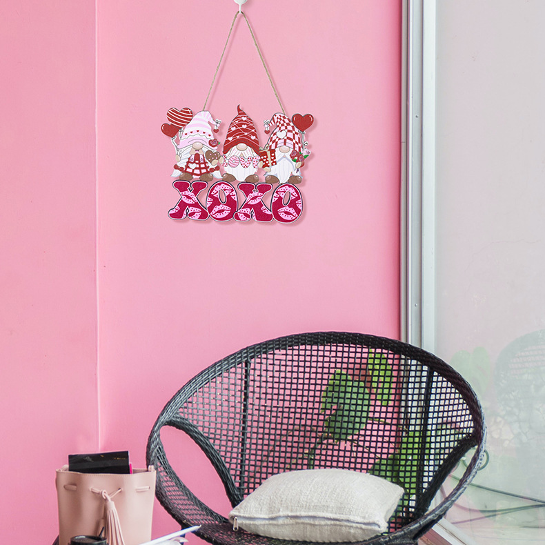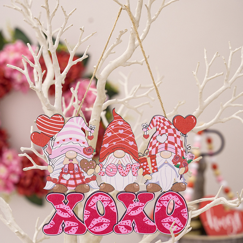 Haobei New Valentine's Day Decorations Pink Wooden Hanging Ornament Forest Old Man LOVE Wood Hanging Atmosphere Decoration