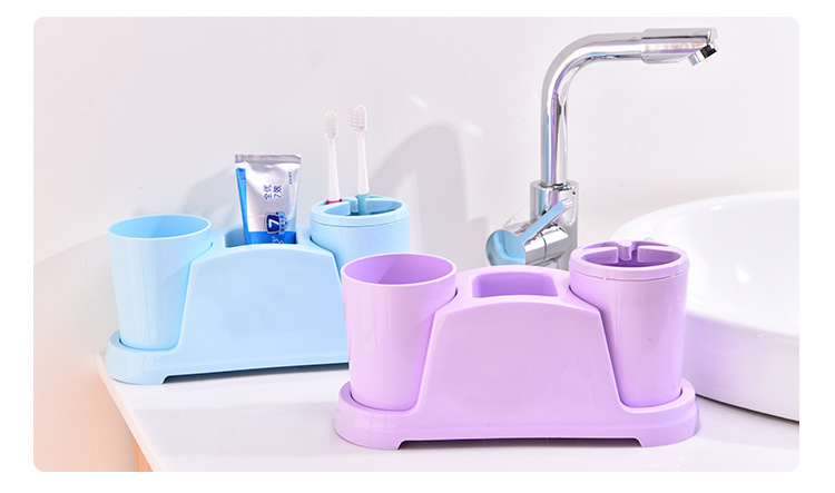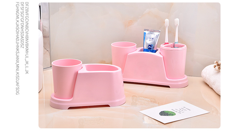 Cartoon Toothbrush Holder Couple Set with Storage Box and Non-Drilling Installation