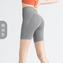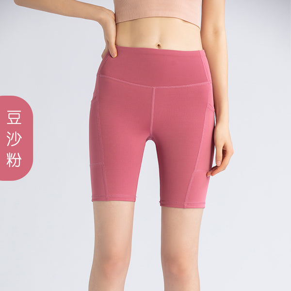 - ["Made of 82.5% Polyester and 17.5% Spandex for breathability and comfort.","High waist design with pockets on both sides for added convenience.","Stretchy and lightweight fabric for a comfortable fit.","Suitable for fitness, gym, running, and workout.","Machine washable for easy maintenance."]