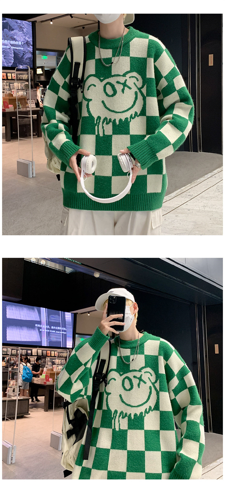 - ["Made of high quality knitted fabric, comfortable to wear","Features plaid pattern, stylish and fashionable","Round neck and long sleeve design, classic and timeless","Casual style, suitable for autumn and winter","Hong Kong style, perfect for young people"]