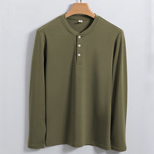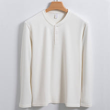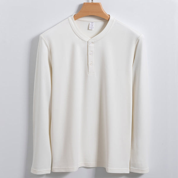 Men's 320g Woolen Henry Shirt with Modal, Cotton and Acrylic Fibers, Plain Color, Straight Style, Fit for Youth, Collarless, Long Sleeve, Thickened, Fit for All Seasons