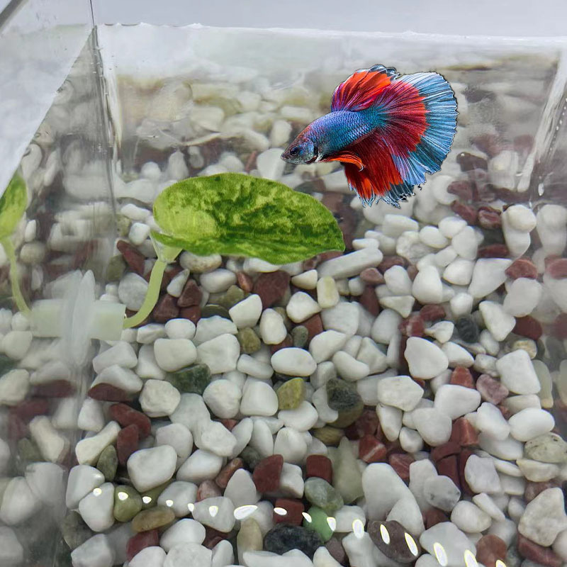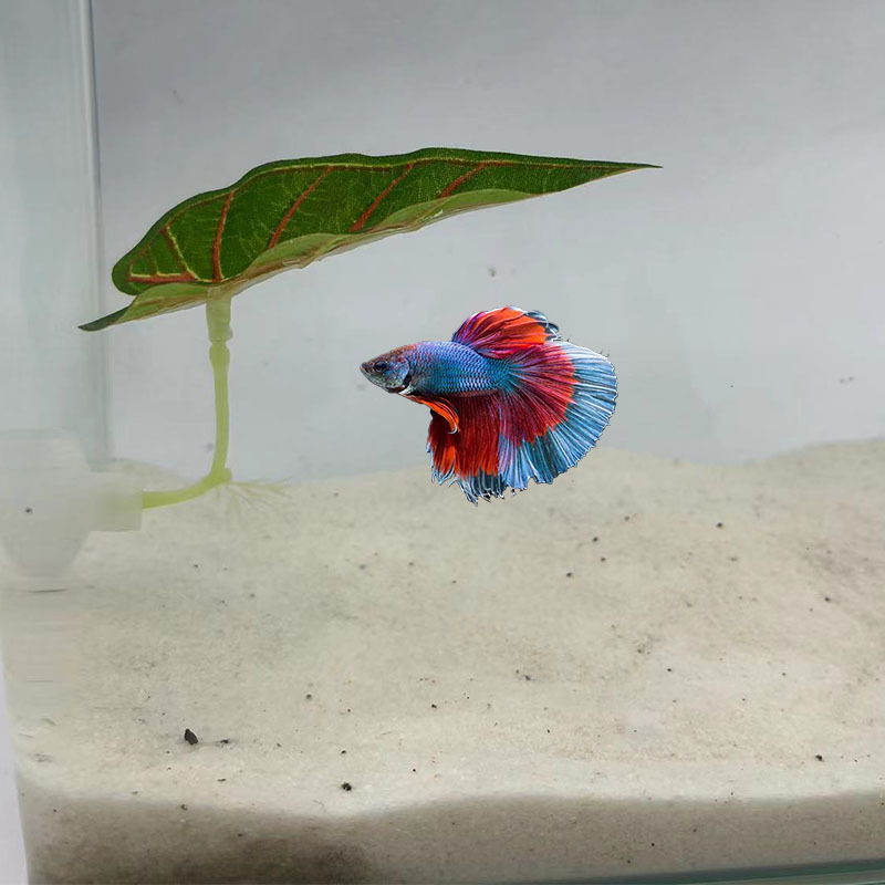 Decorative Fish Tank for Aquariums with Artificial Plants and Fish Resting Leaves
