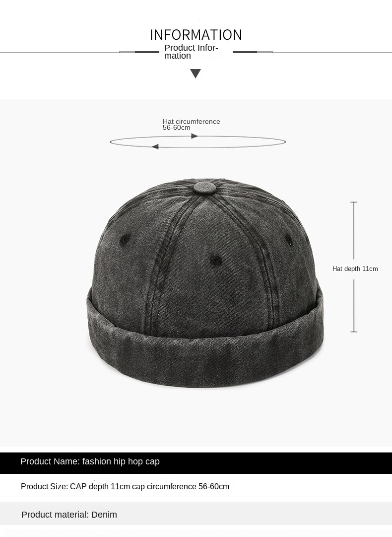 Water Washed Denim Hat - 71% Cotton 80% Polyester - Four Seasons - Round Top, No Brim - Breathable, Windproof, Sun Protection, Sweatproof, Anti-mite