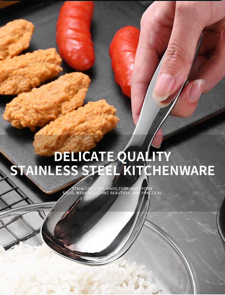 304 Stainless Steel Hollow Handle Spoons Set - Serving, Soup, Salad and Rice Spoons