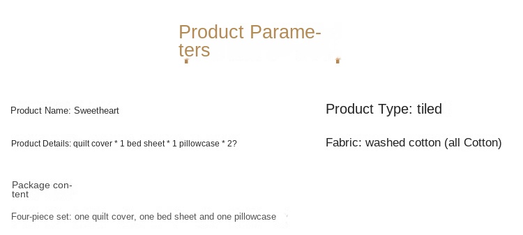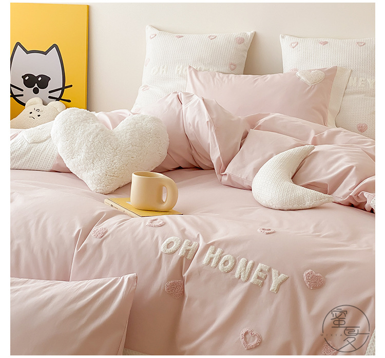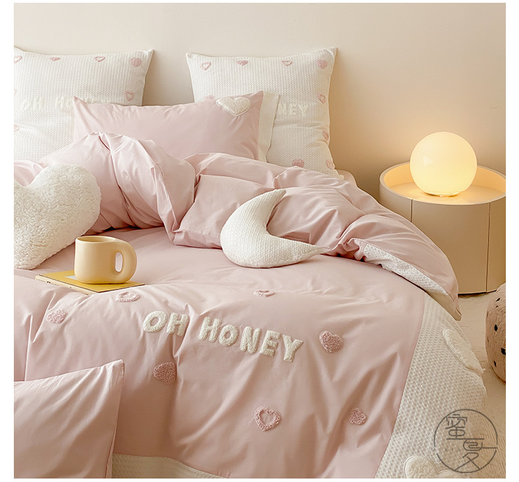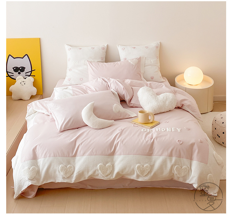 Girl's Heart Cotton 4-Piece Set with 3D Love Pattern and Pure Cotton 1.8m Bed Sheet