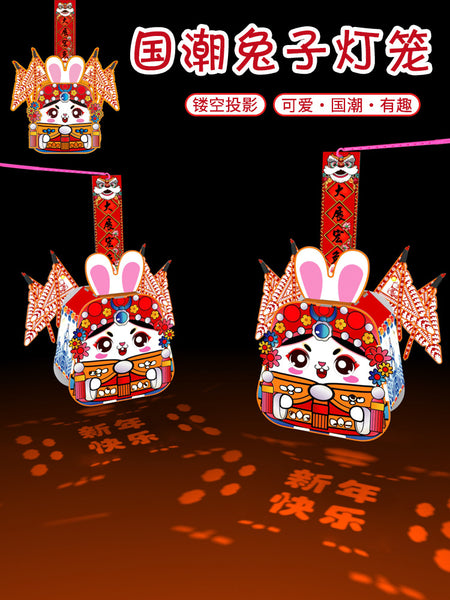 DIY Rabbit Projection Lamp - Handmade Paper Lantern with Cardboard Style and Light-emitting Function for Children