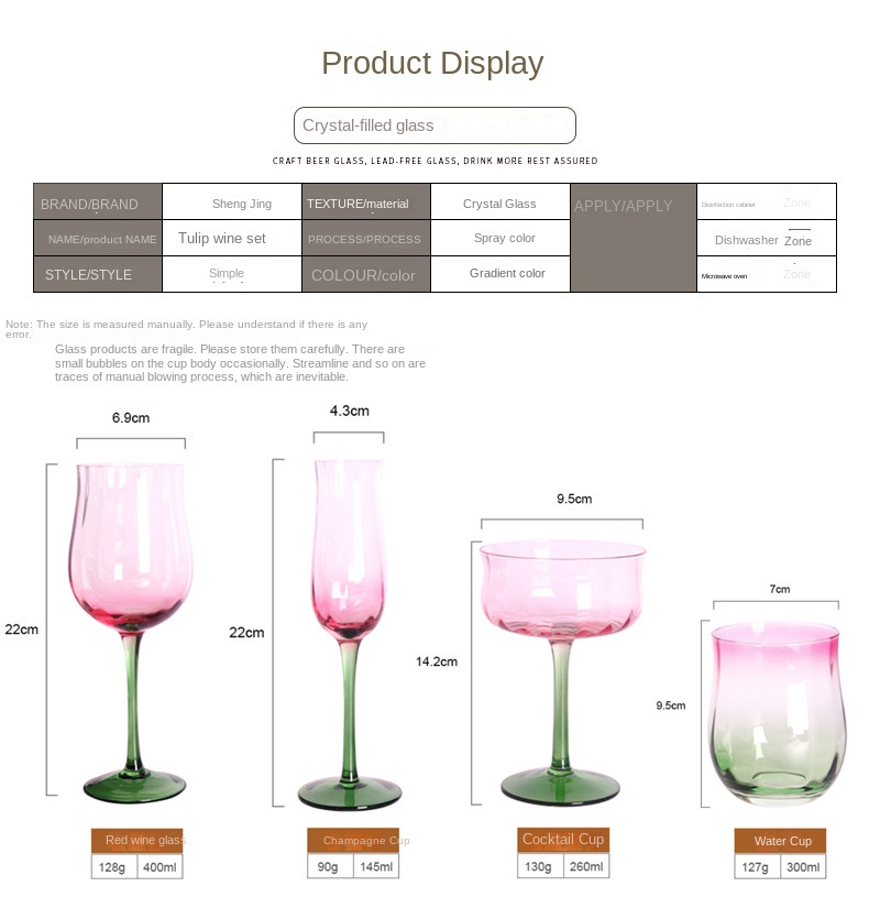 Vintage Red Gradient Goblet Hand Blown Crystal Glassware Wine Cup