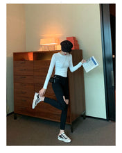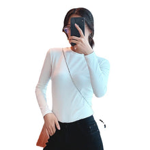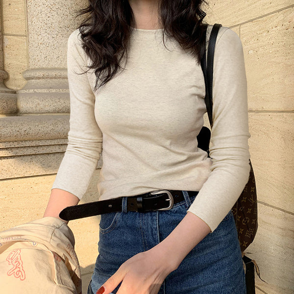 Women's Korean Style Long Sleeve T-Shirt with Round Neck, Plain Color, Regular Fit, Standard Collar and 95% Cotton Fabric for Casual and Leisure Wear