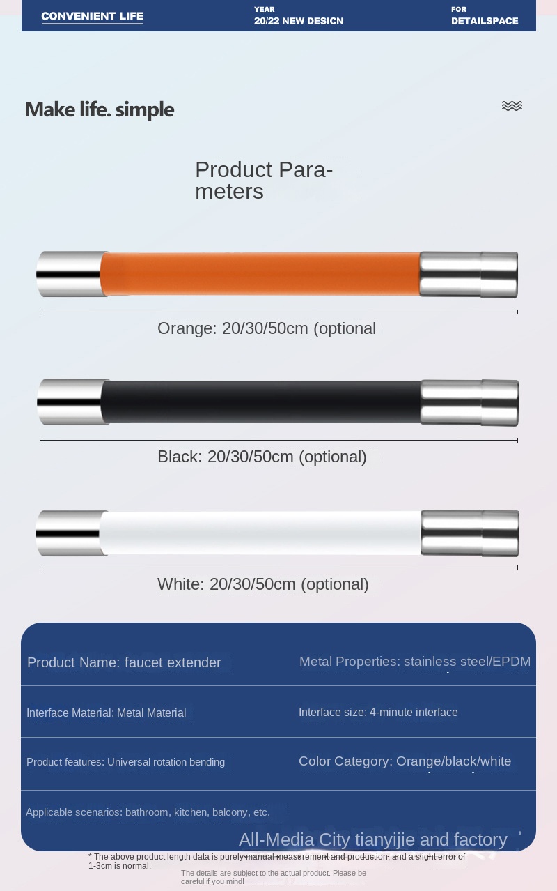 Modern Gold-Plated Faucet Extender with Flexible Hose Connector
