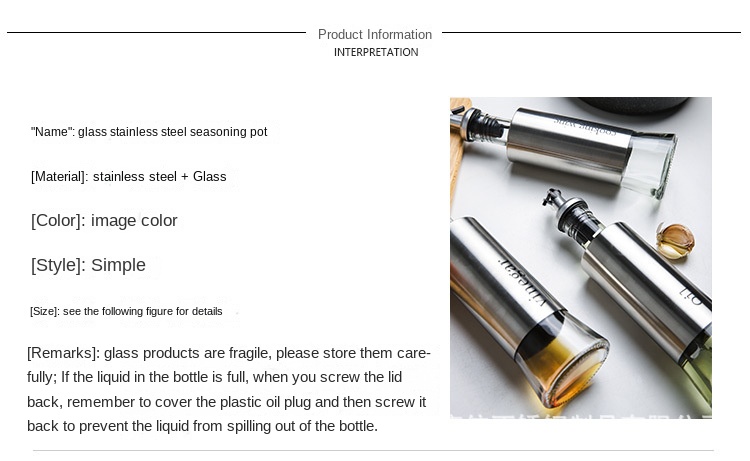 Modern Design Press Oil Pot Set with 200ml/300ml/500ml Capacity and Stainless Steel Material