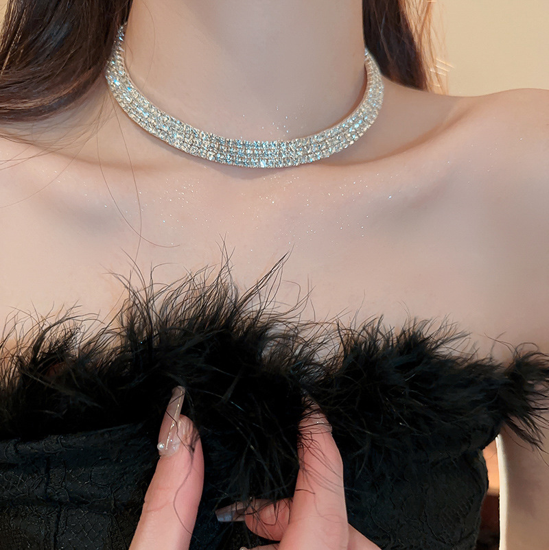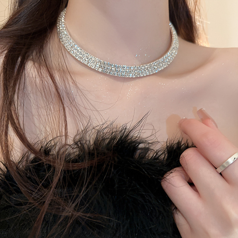 French Retro Luxury Diamond Necklace with Elegant and High-end Feelings