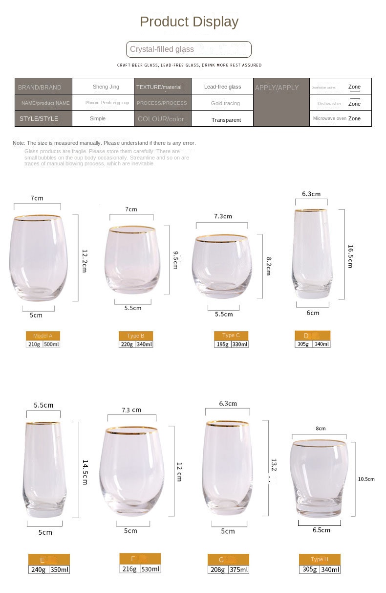 Large Gold Rim Crystal Glass Cup, Creative Style, High Temperature Resistant, Custom Logo Available, Single Layer Structure, Suitable for Home Use, Water Applicable, Plain Color, Circular Shape, Universal Group, Gift Exchange Object, Young People, Gift Ex