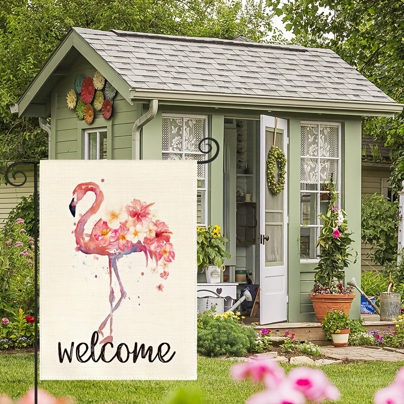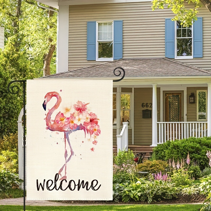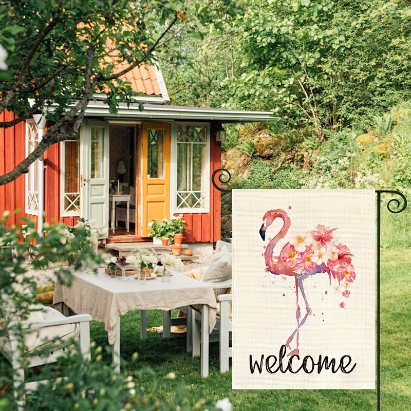 Colorful Summer Garden Flag with Flamingos and Flowers