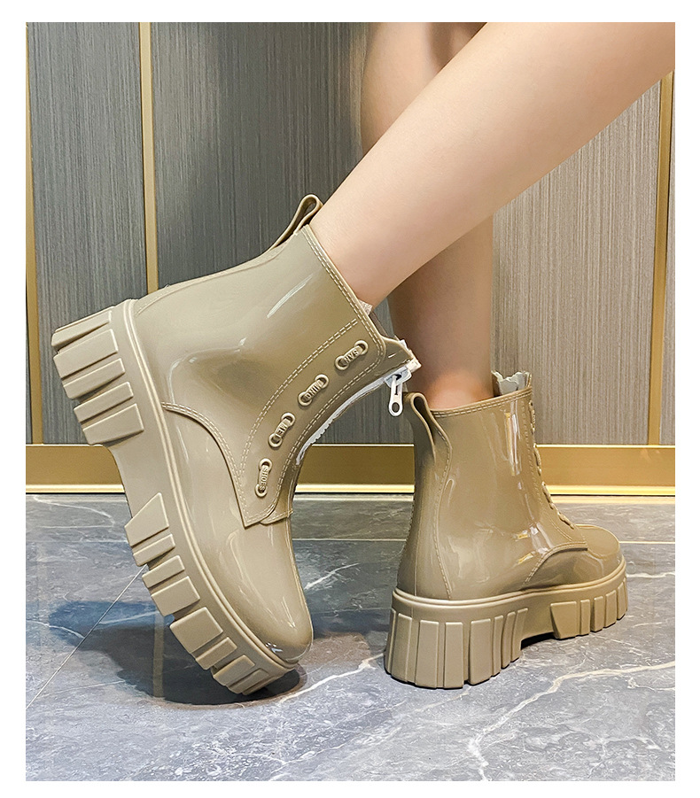 - ["Stylish and fashionable design","Made of high quality PVC material","Suitable for all seasons","Low heel for comfort","Lace-up closure for secure fit"]