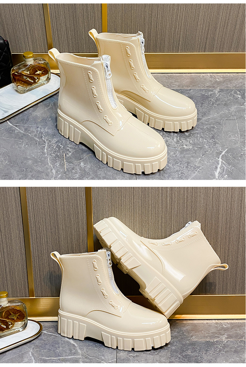 Women's Stylish Waterproof Motorcycle Boots, Low Heel, PVC Material, Suitable for All Seasons