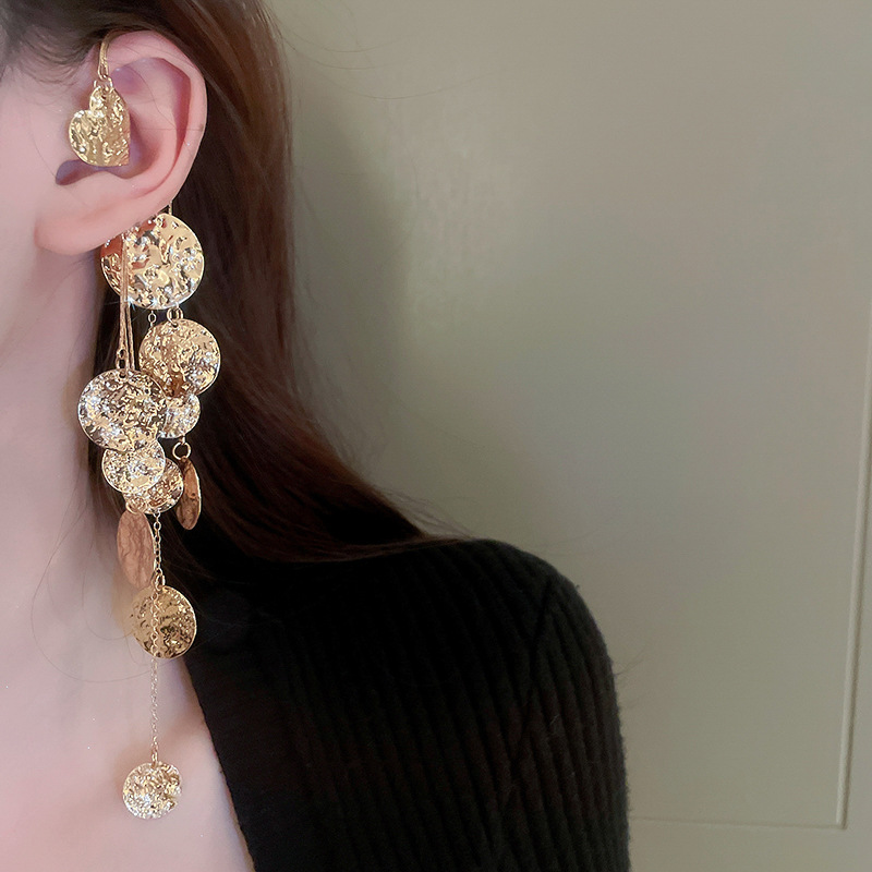 Fashionable Gold Metal Earrings with Unique Personality and Circle Pattern