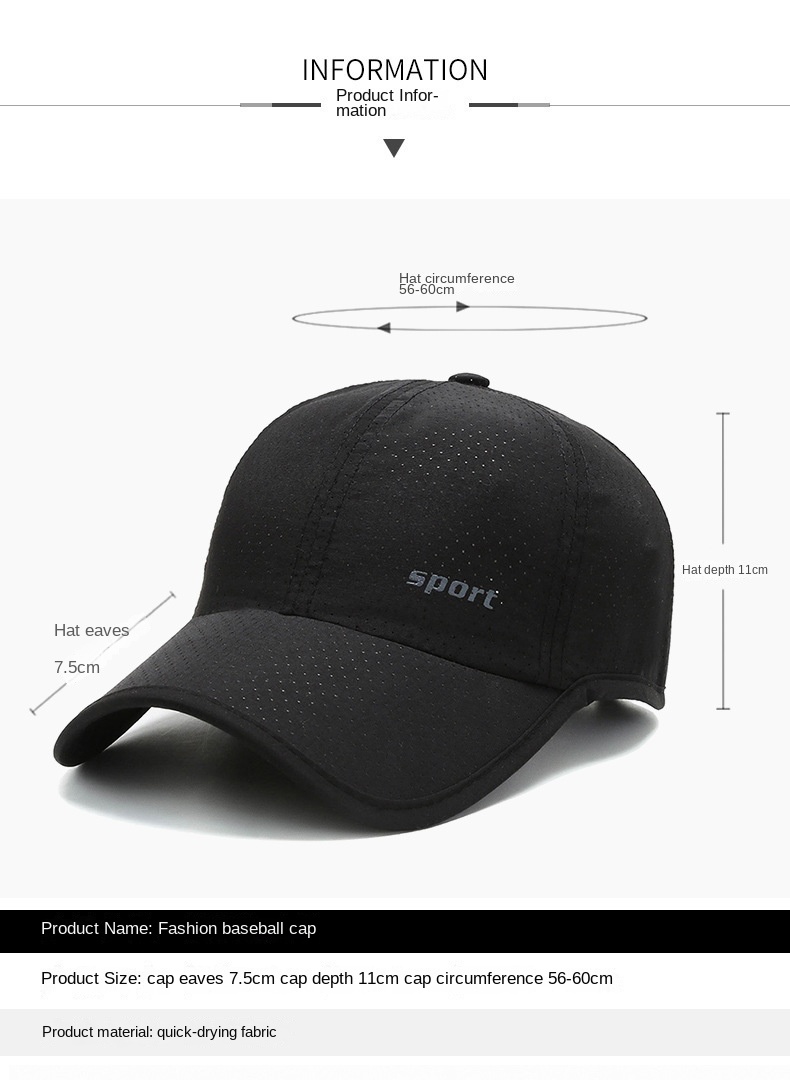 Summer Lightweight Quick-Dry Duckbill Cap with English Letters, Suitable for Summer, Round Top, Big Brim, Breathable, Quick-Dry, Sun Protection