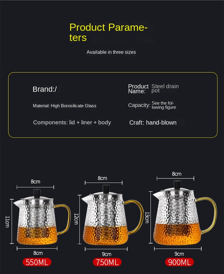 High-Quality Hammer Pattern Glass Teapot with Different Capacity for Japanese Style Tea