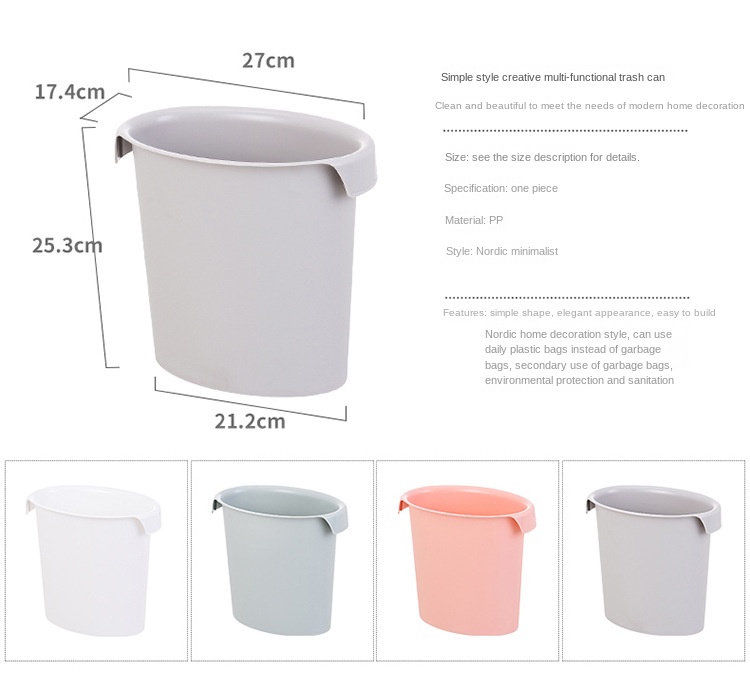 5L Kitchen Trash Can with 100% New Material, No Lid, Rectangular Shape