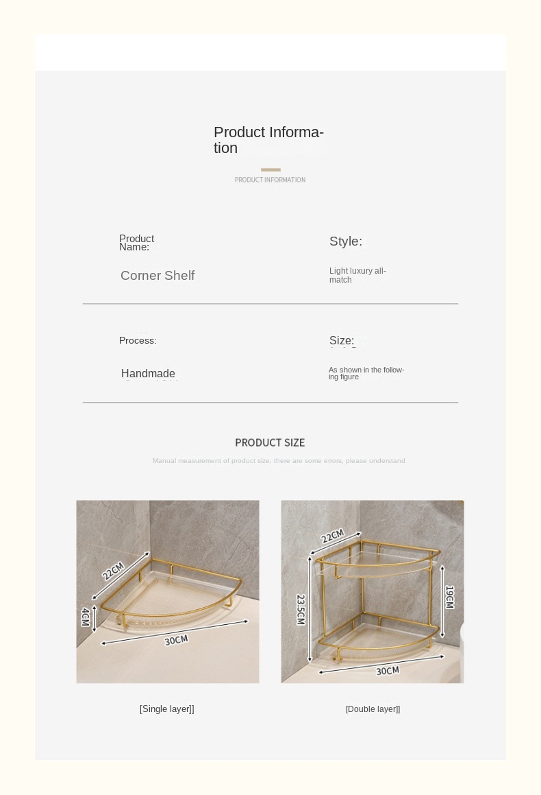 Nordic Light Luxury Washroom Sink Table Iron Corner Single/Dual Layer (Flat Type), Gold, 141