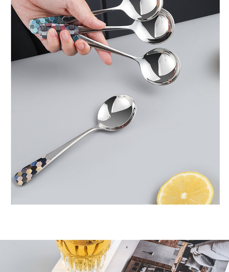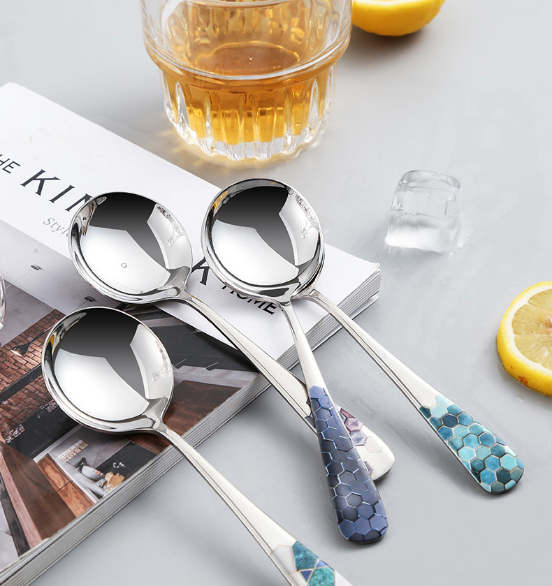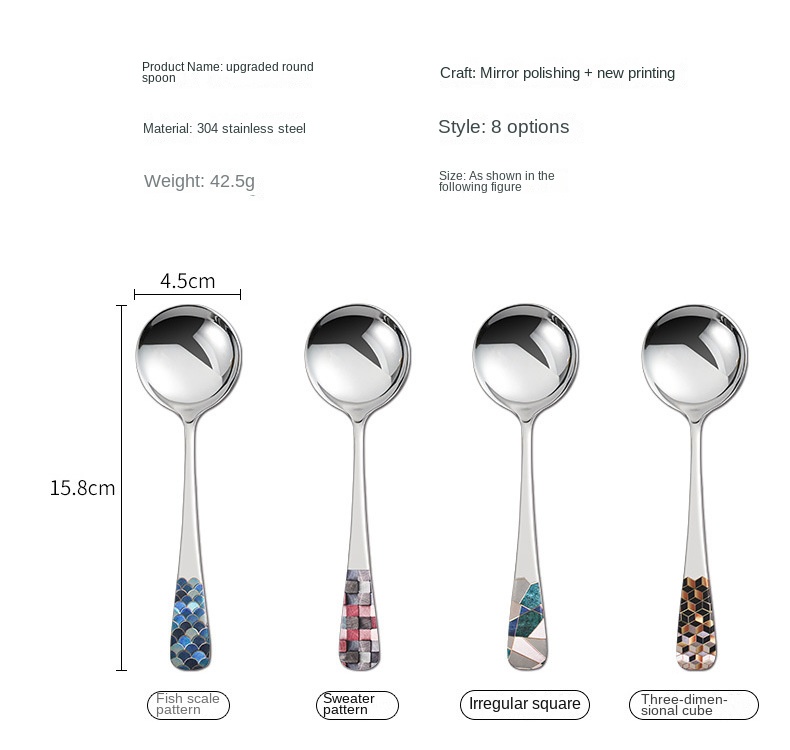 304 Stainless Steel Korean Round Spoon with Creative Relief Handle for Adults, Suitable for Wedding, Birthday and Anniversary Gifts