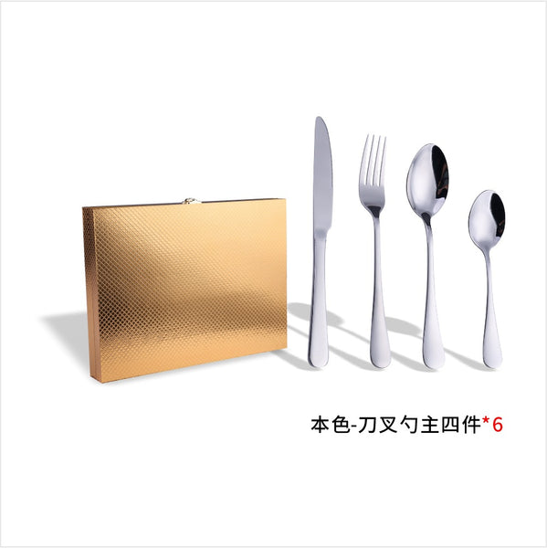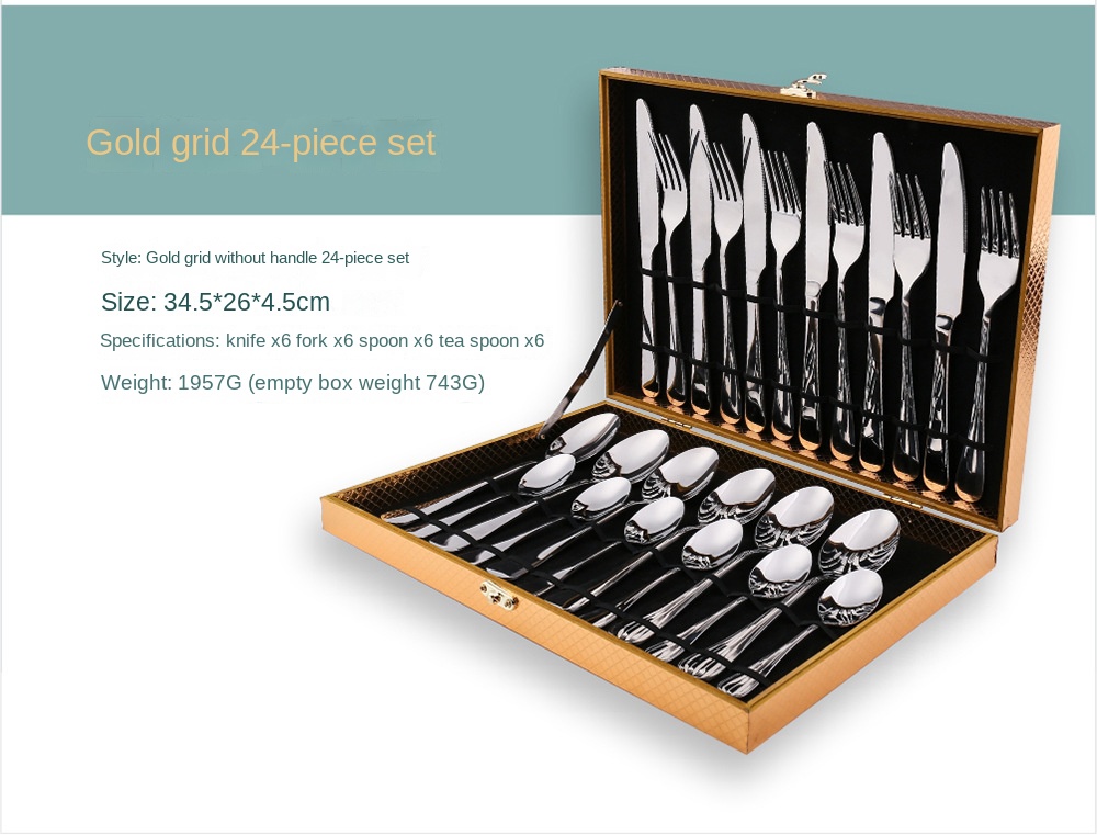 24-Piece Stainless Steel Cutlery Set in Wooden Box, Perfect for Gifting, 6-Person Serving Set