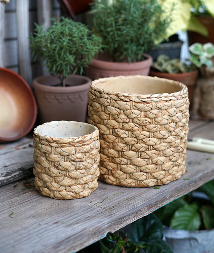 Creative Nordic Weave Flower Pot - 16.5cm Handmade Waterproof Air-Permeable and Durable Tabletop Decor for Home Garden Patio Balcony