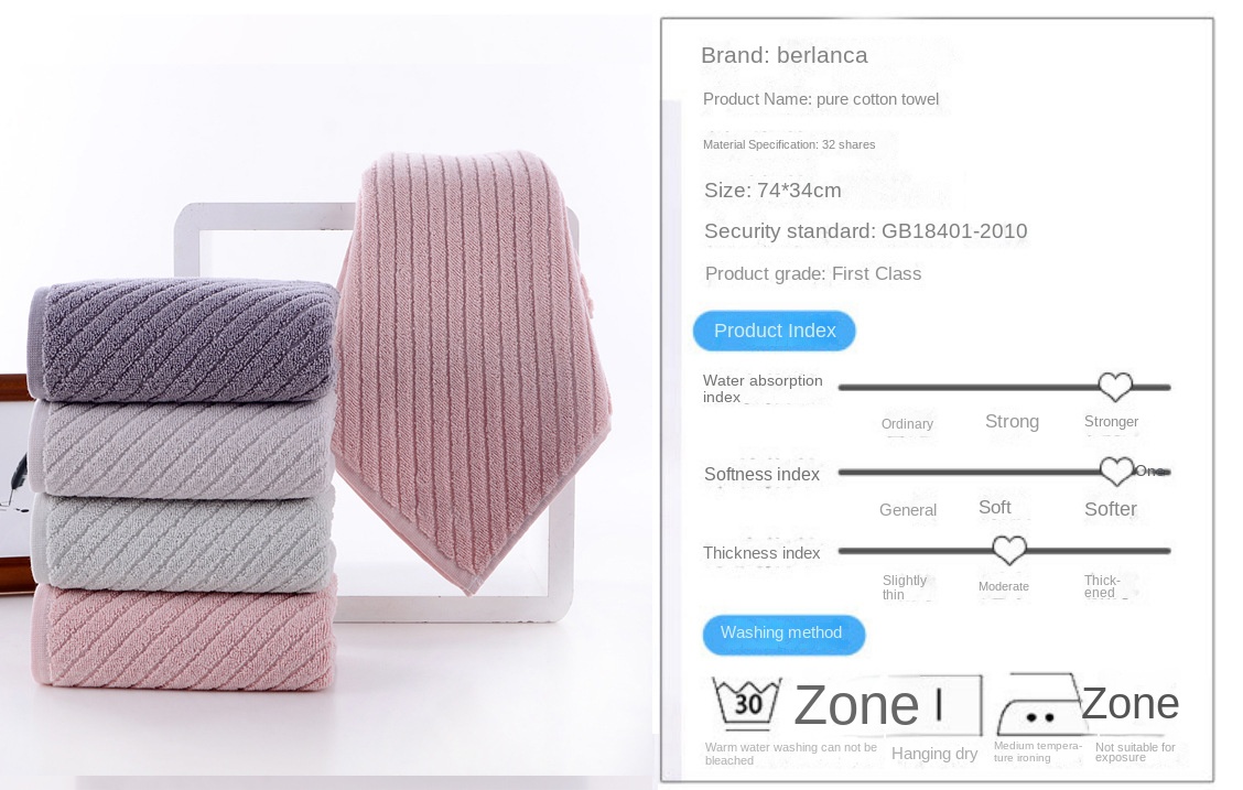 Pure Cotton Towel 32-Ply, 34X74cm, Soft, Absorbent, Home Use, Gift