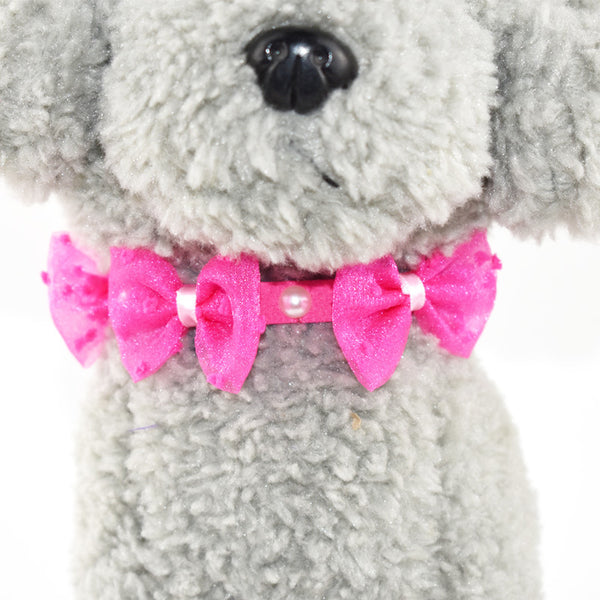 Korean Fur Pet Collar with Pearls and Butterfly Knots for Cats and Dogs