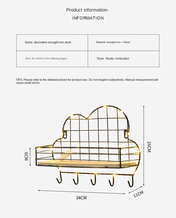 No Drilling Nordic Key Wall Hook - Iron - Three-tier Rack - Max Load 10kg - Creative Decoration for Bedroom