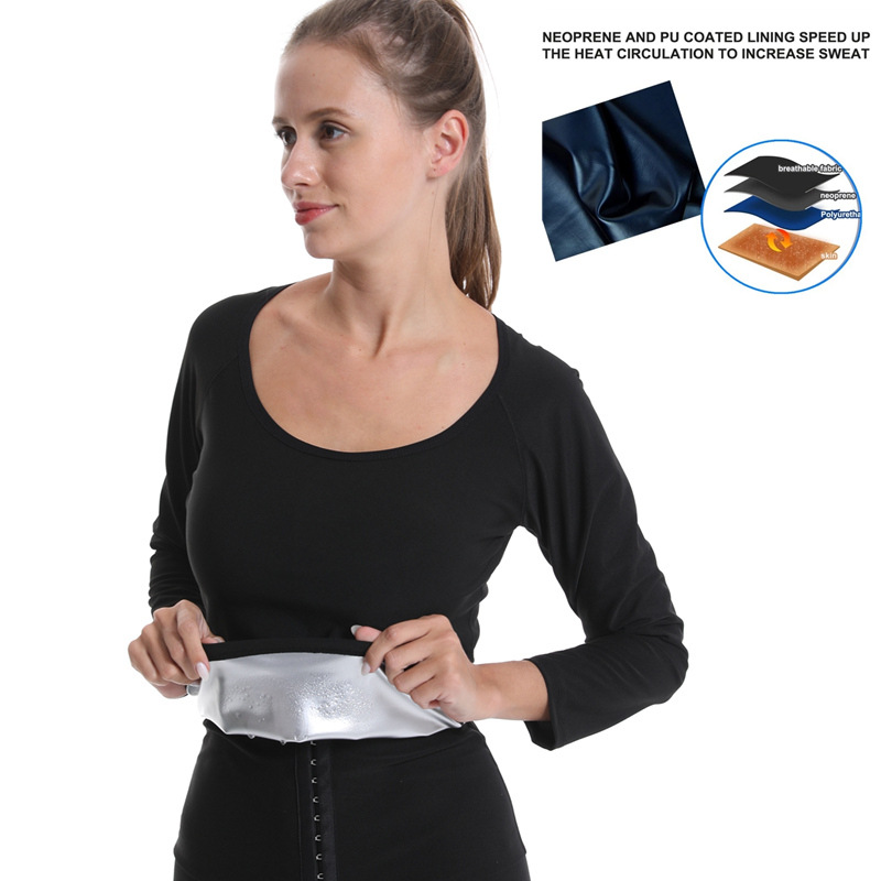 New women's long-sleeved sweat-absorbing and sweating yoga suit, body sculpting blouse, sports sauna suit