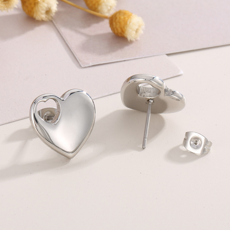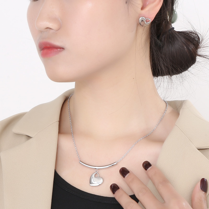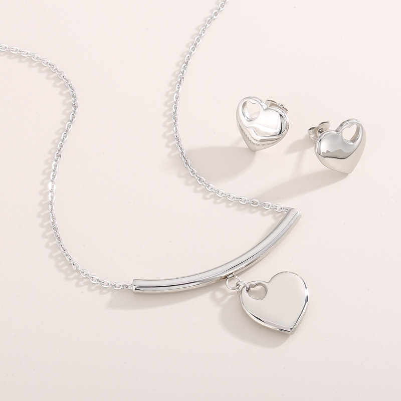 Fashionable Stainless Steel Women's Jewelry Set with Heart-Shaped Pendant and Chain