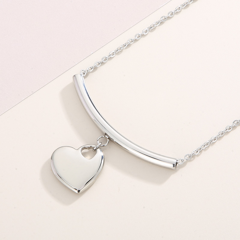 - ["Made of high quality stainless steel, durable and long lasting.","Fashionable European style, perfect for any occasion.","Heart-shaped pendant and lobster clasp chain, simple and elegant.","Great gift for your friends and family.","Comes with a jewelry box, ready for gift giving."]