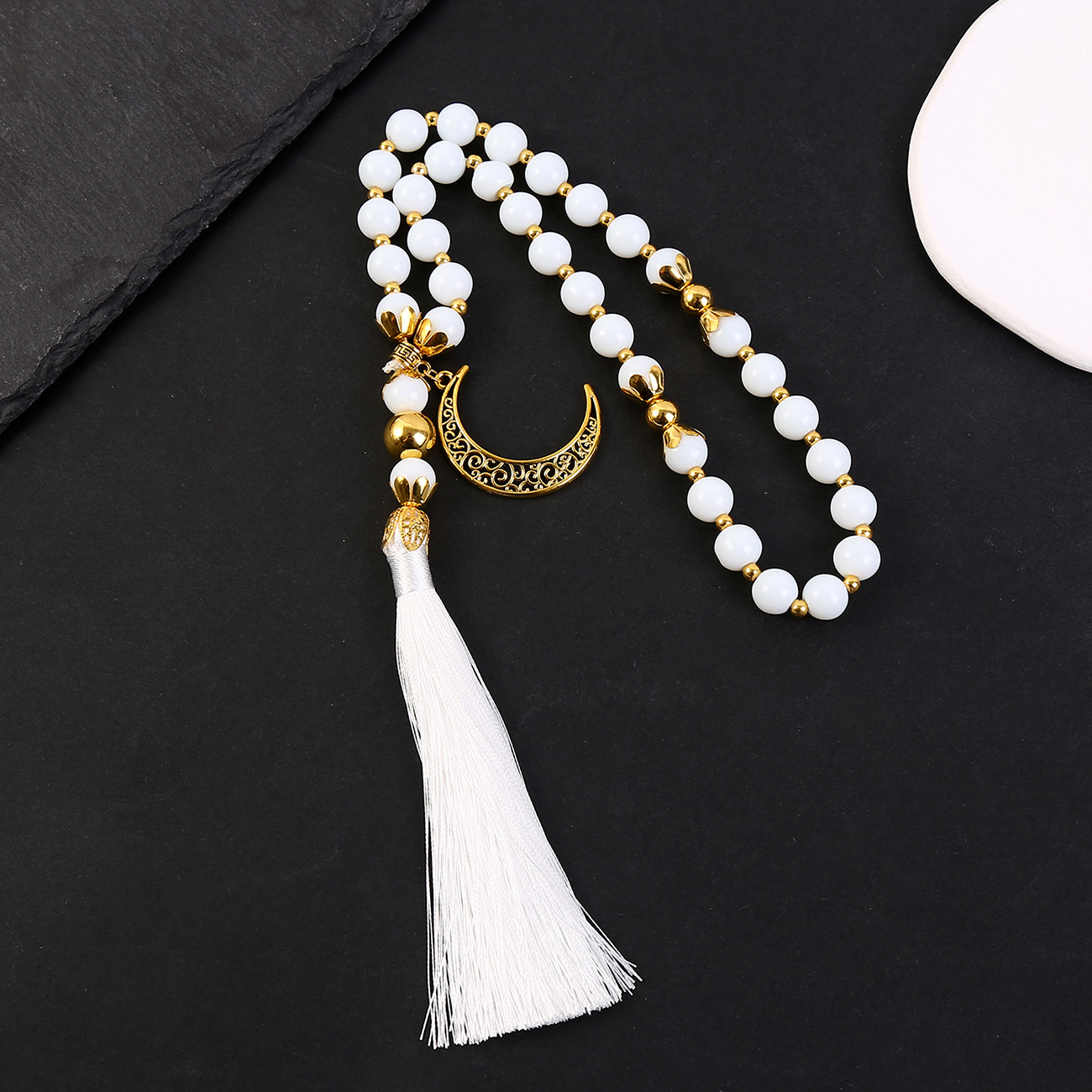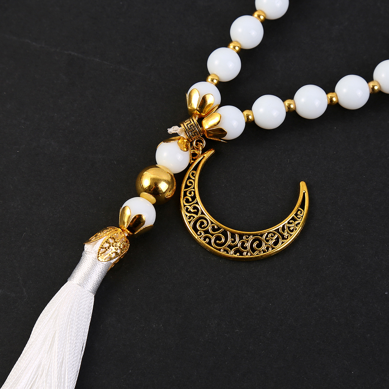 Muslim Prayer Beads 33 Crystal Bracelet Tassel Moon Islamic Misbaha Jewelry