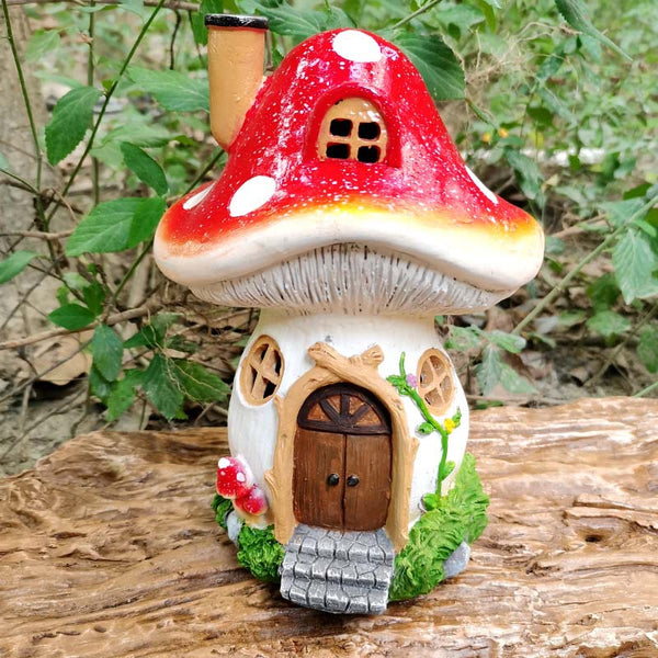 Garden Courtyard Solar LED Mushroom House Resin Crafts Decoration for Home Living Room