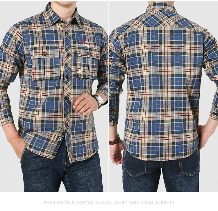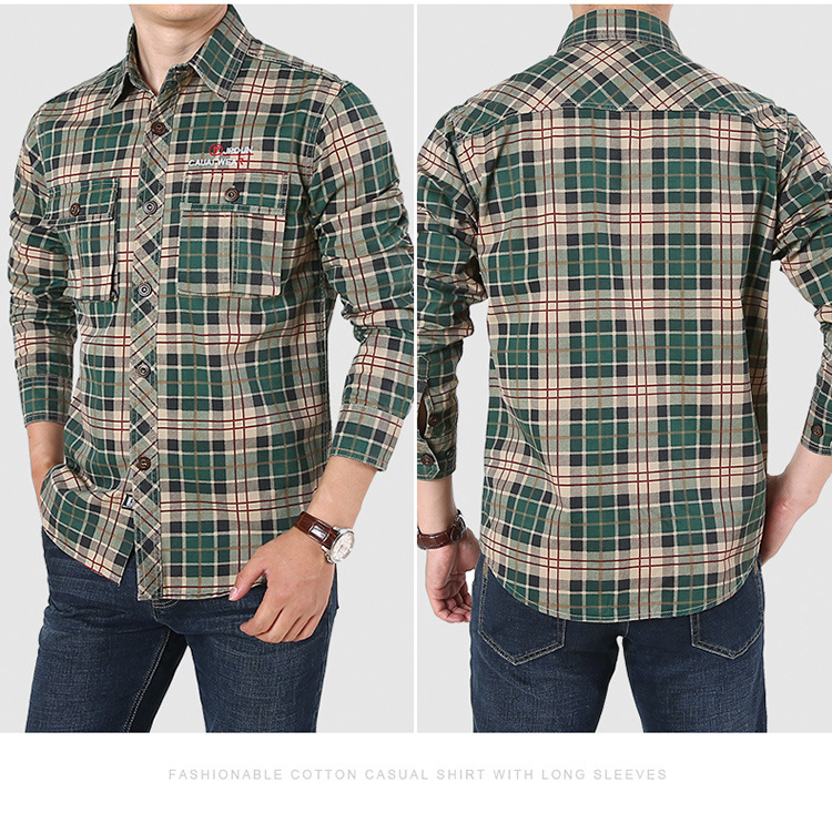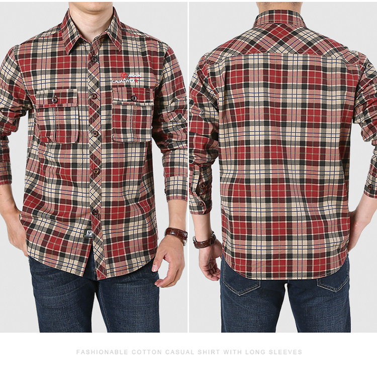 Men's Spring Autumn Plaid Long Sleeve Shirt Casual Pure Cotton Plus Size Outdoor Shirt 100% Cotton 5527