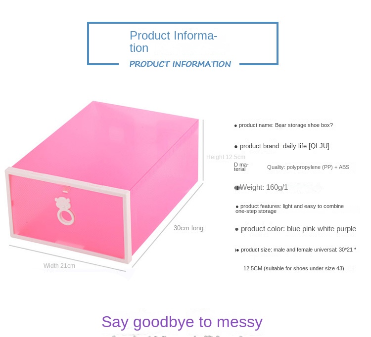 Plastic Shoe Storage Box with Drawers, 100% New Material, 31*22*13cm