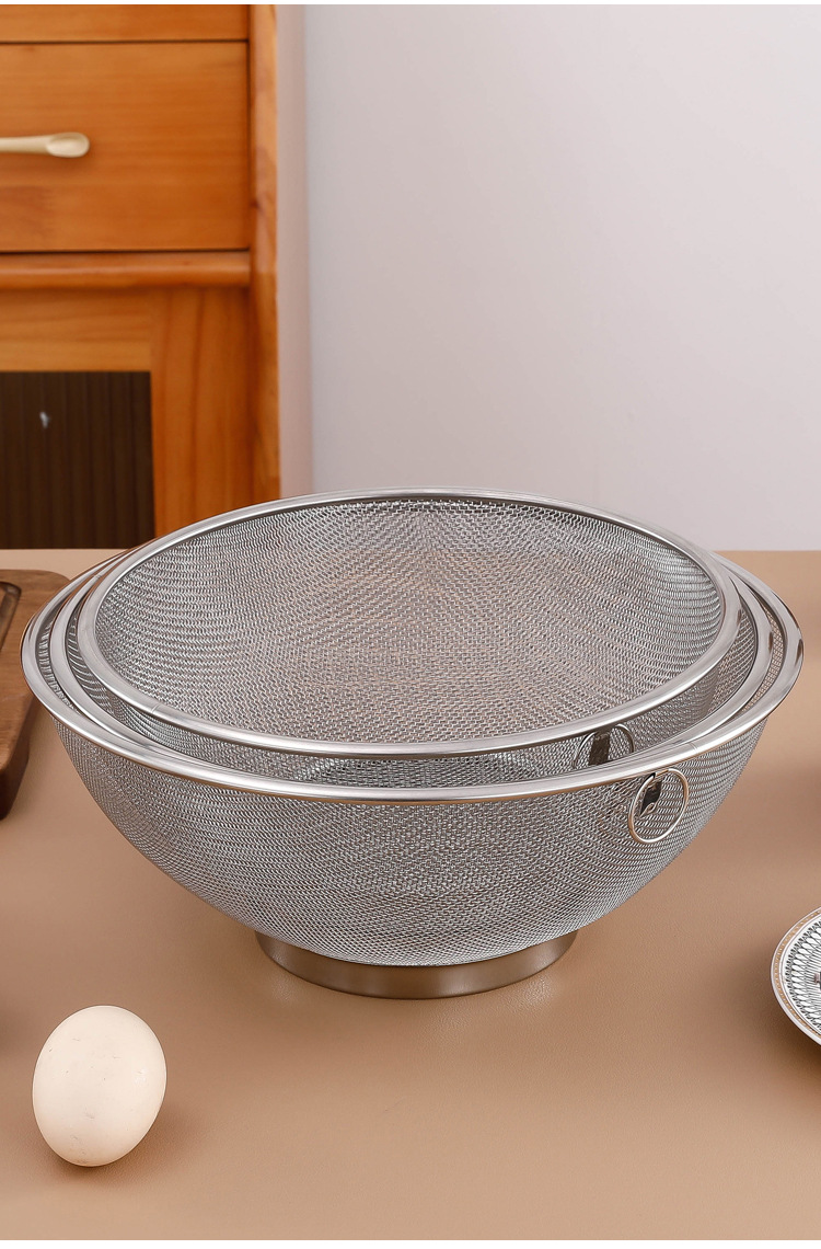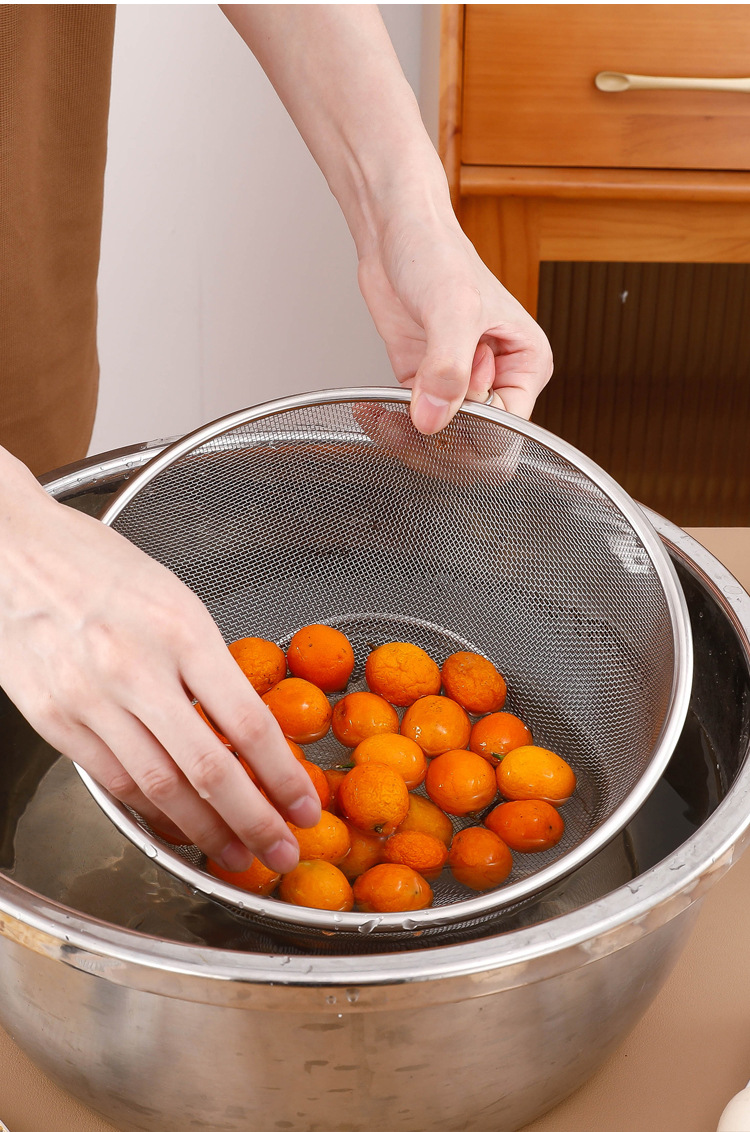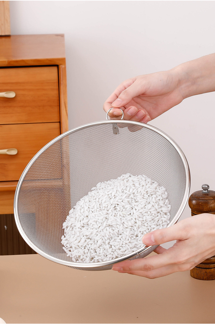 304 Stainless Steel Kitchen Strainer with Circular Filter Mesh for Washing Fruits and Vegetables