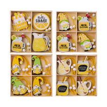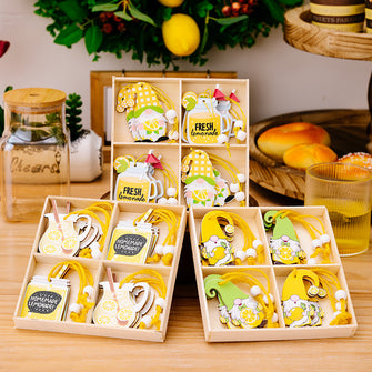 New Summer Decorative Lemon Wood Hanging Ornament 4 Grid Box Lemon Shaped Decoration