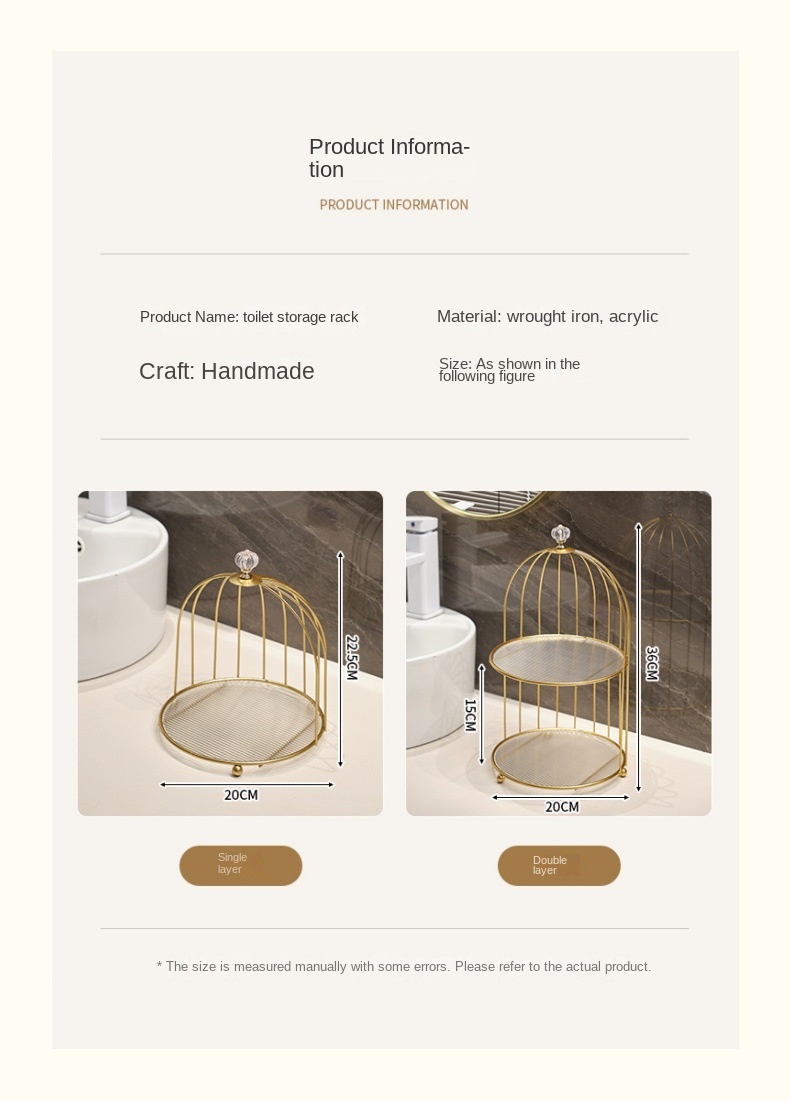Golden Single/Double-Layer Birdcage Shower Caddy Artistic Ironwork