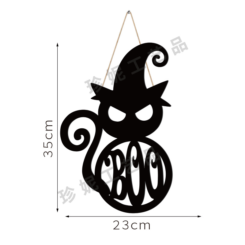Halloween Decorative Non-woven Wooden Door Hanging, Black Boo Wall Sign, Party Supplies