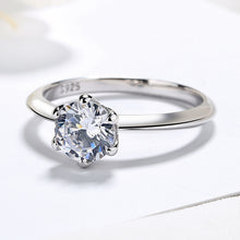 925 Silver Crown Ring with 6 Claws, Simple and Stylish, Set with Zircon for Women