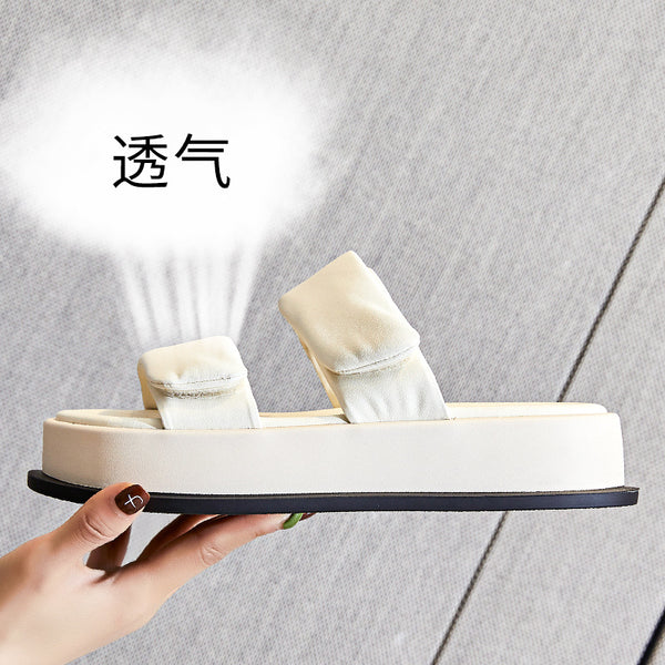 Ins Summer Women Flat Slippers, Breathable, Super Soft, Magic Tape, Comfortable, Stylish