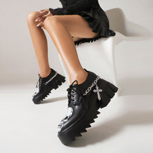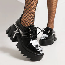 Plus Size Gothic Dark Skull Cross Thick Bottom Shoes Women High Heel Single Shoes