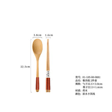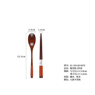 Japanese Style Student Wood Cutlery Set - 22.5cm Spoon, Fork and Chopsticks - Portable for One Person Picnic