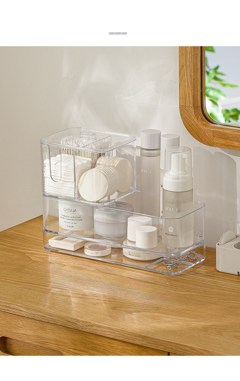 18L Transparent Plastic Makeup Storage Box with Handle, Grid, and Separator for Home, Office, and Bathroom